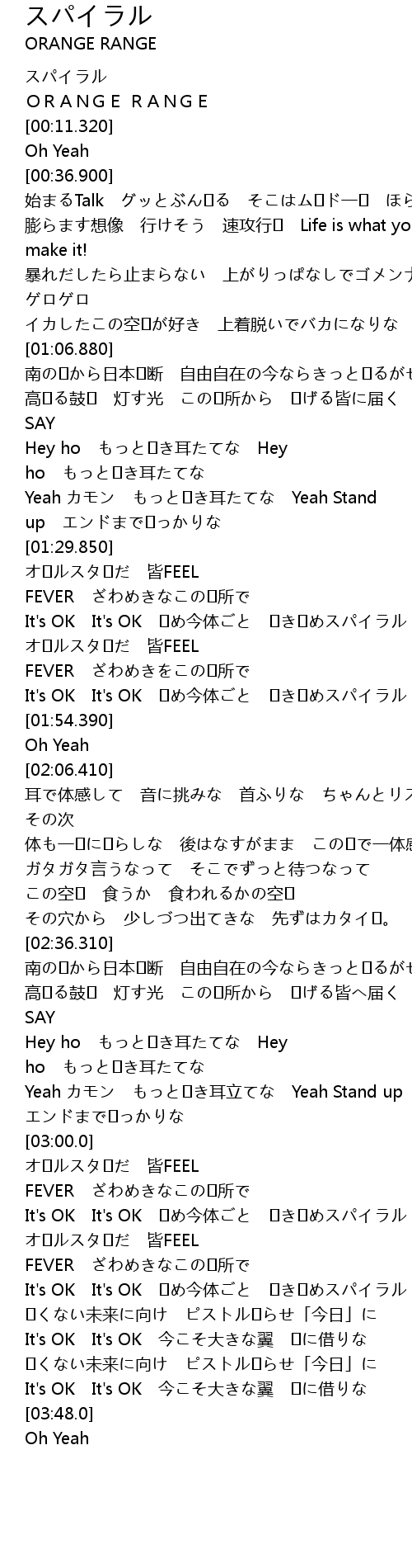 | [03:17.930] | It's OK It's OK �め今体ごと �き�めスパイラル |