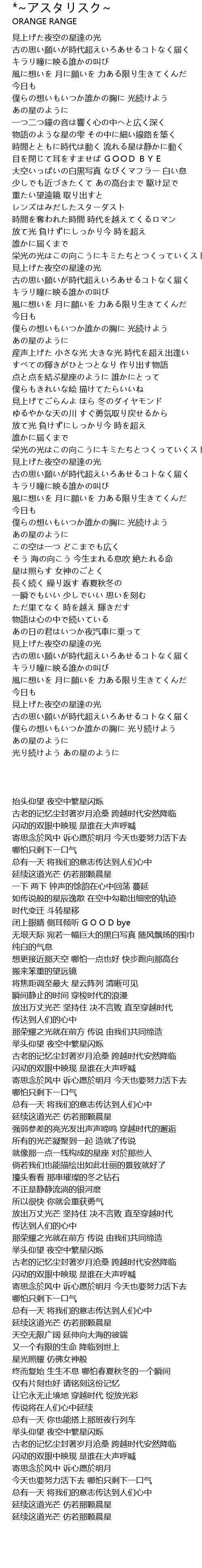 | [03:38.910] | 僕らの想いもいつか誰かの胸に 光り続けよう あの星のように |