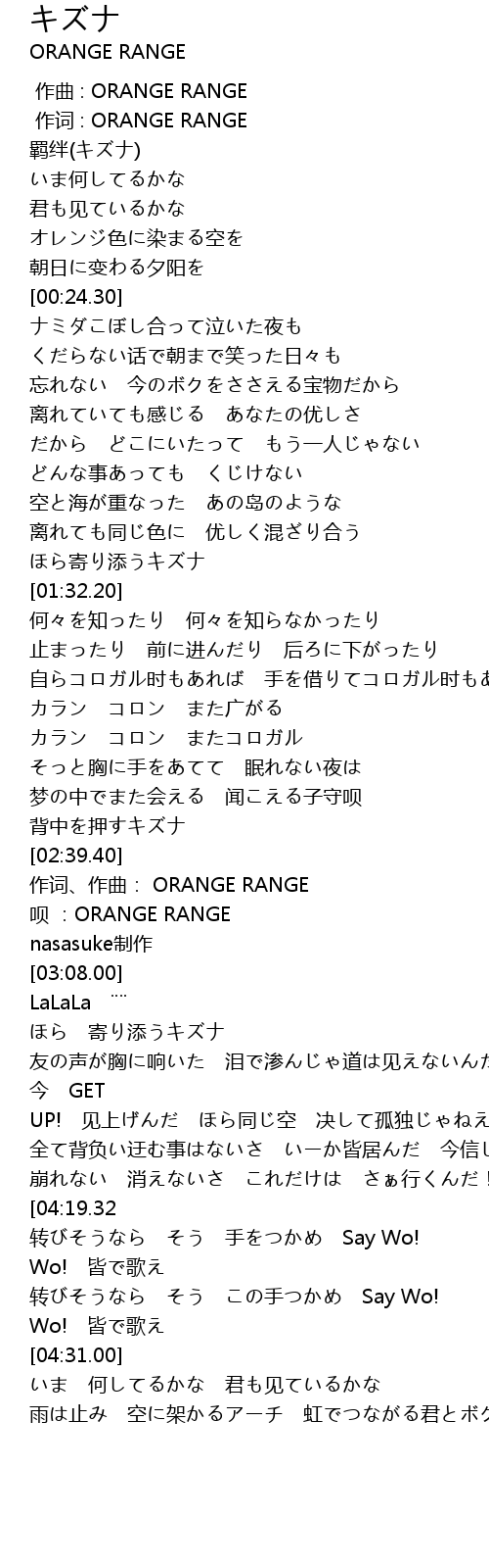 | [02:40.00] | 作词、作曲: ORANGE RANGE |