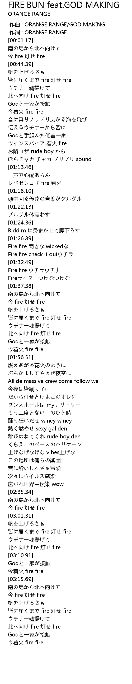 | [00:00.00] | zuo qu : ORANGE RANGE GOD MAKING |