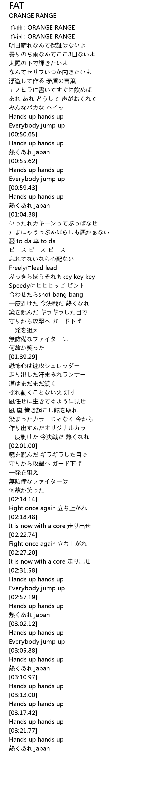 | [00:00.00] | 作曲 : ORANGE RANGE |
