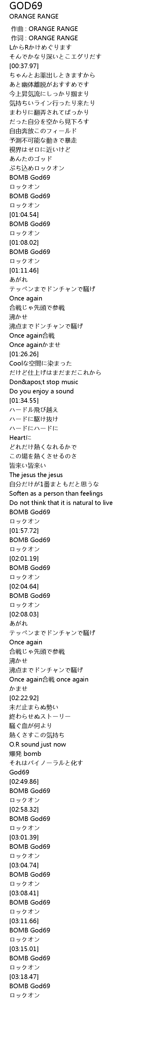 | [00:01.00] | 作词 : ORANGE RANGE |