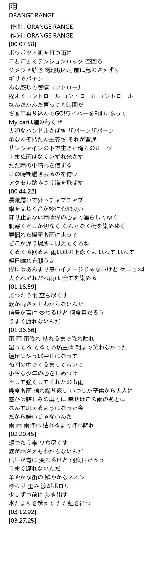| [00:01.00] | 作词 : ORANGE RANGE |
