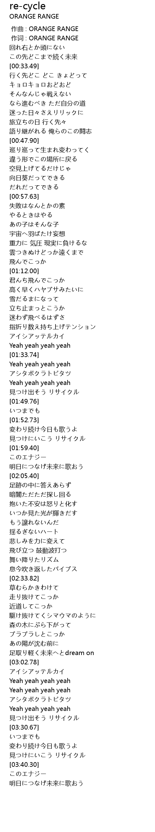 | [00:01.00] | 作词 : ORANGE RANGE |