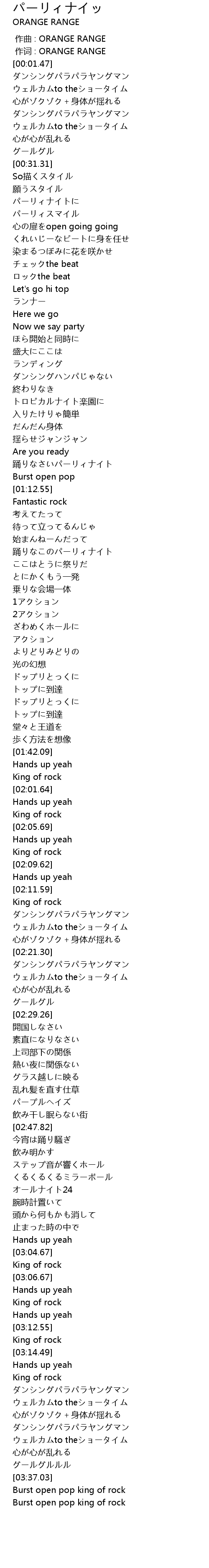 | [01:08.98] | 踊りなさいパーリィナイト |