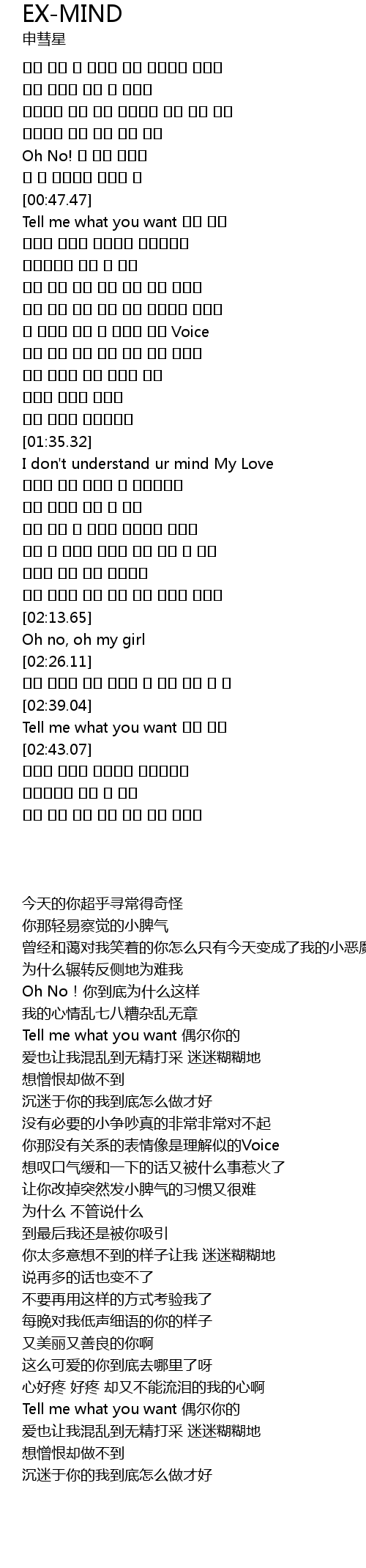 | [02:39.75] | Tell me what you want |