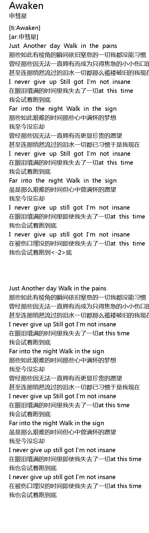 | [02:58.17] | 我也会试着跑到<-2>底 |