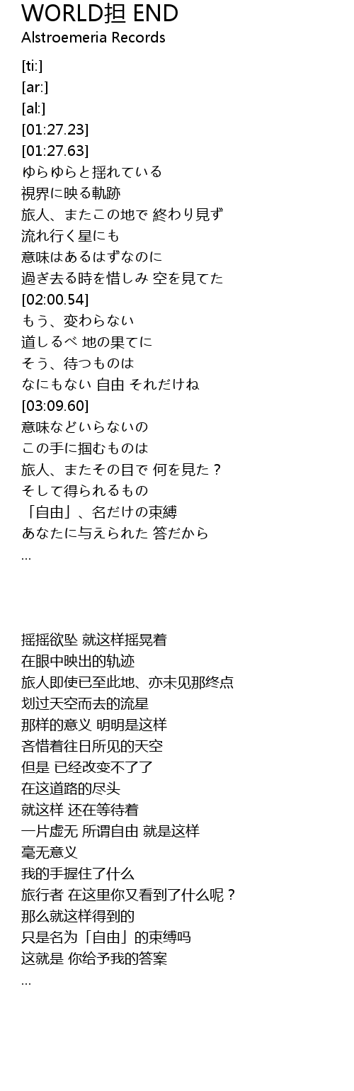 WORLD dan END Lyrics