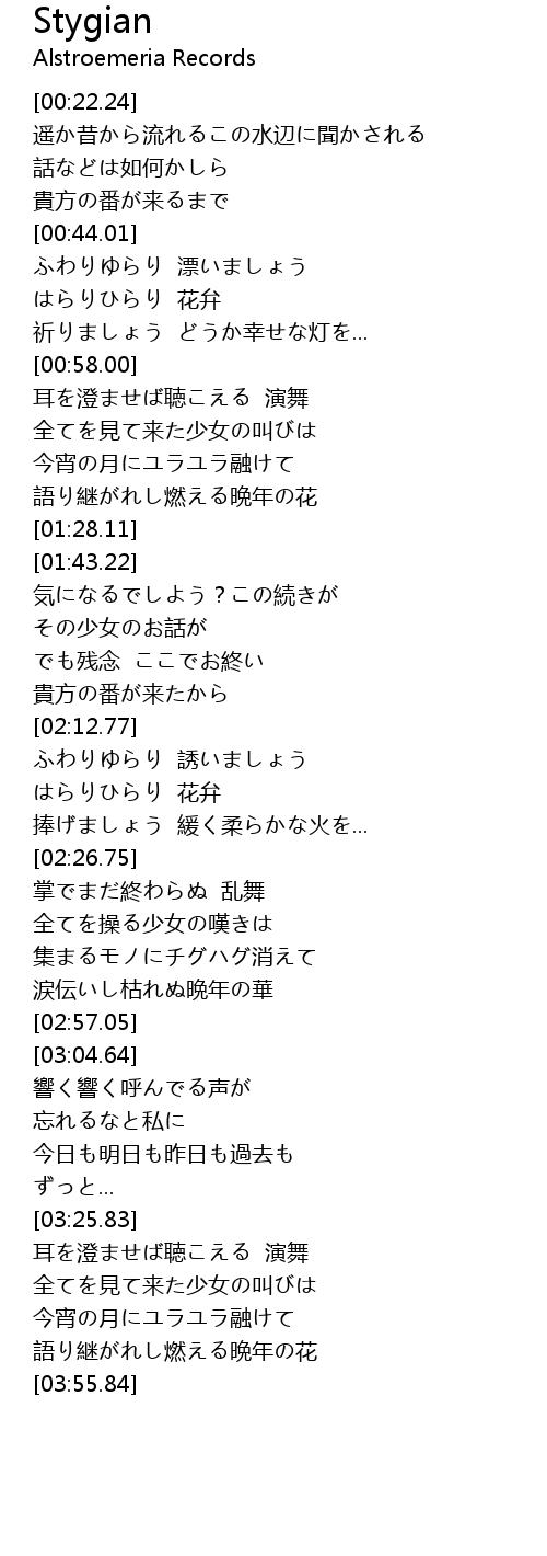 | [03:48.44] | 語り継がれし燃える晩年の花 |