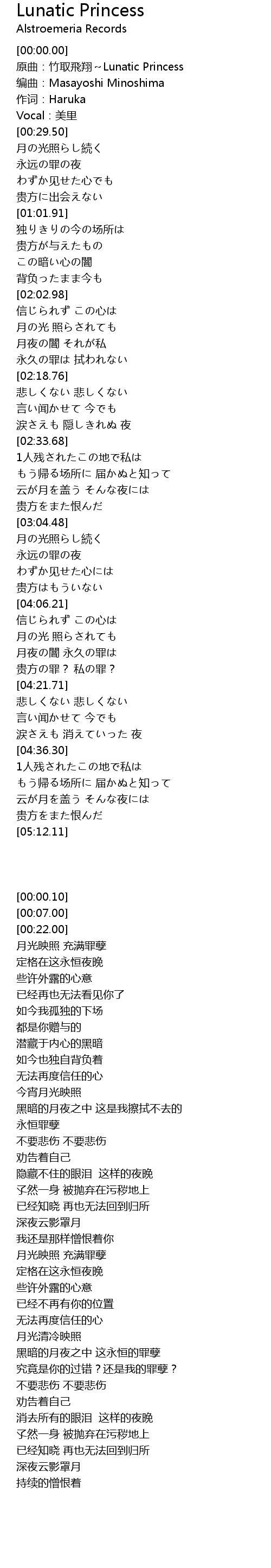 | [00:00.10] | yuán qǔ: zhú qǔ fēi xiáng Lunatic Princess |