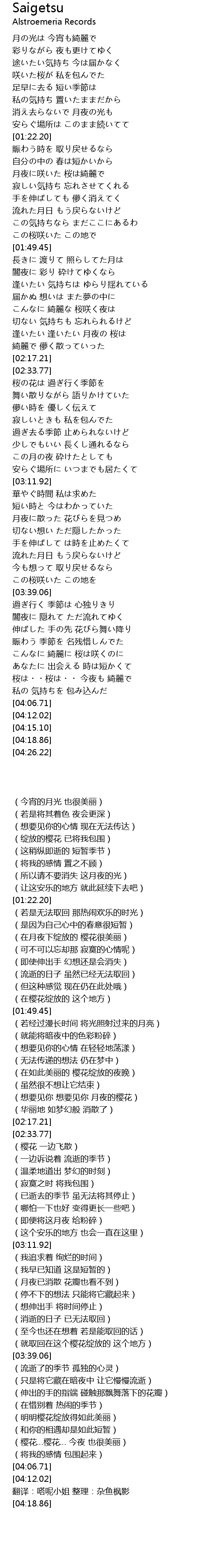| [03:59.74] | 桜は・・桜は・・ 今夜も 綺麗で |