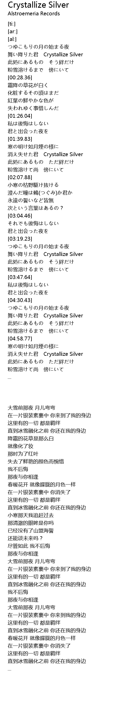 | [04:37.44] | 舞い降りた君 Crystallize Silver |
