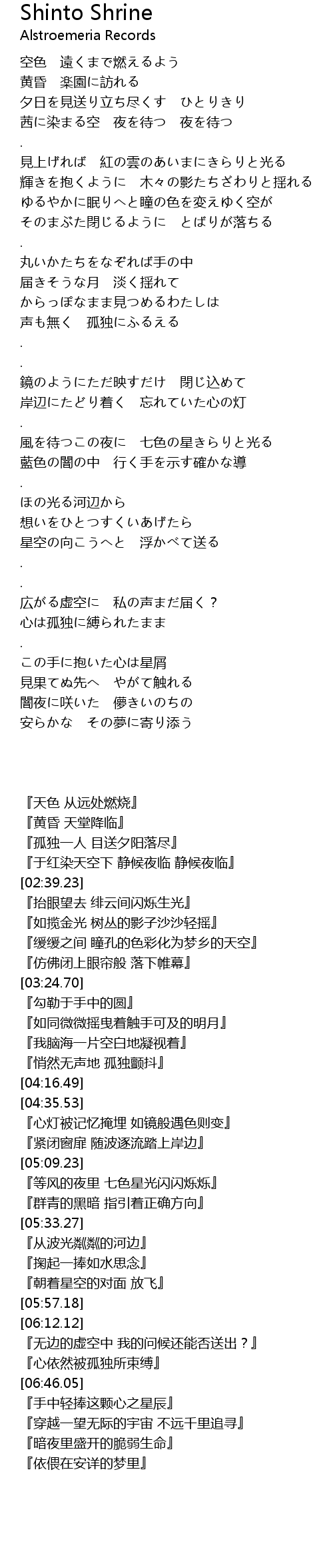 | [02:39.70] | 見上げれば 紅の雲のあいまにきらりと光る |