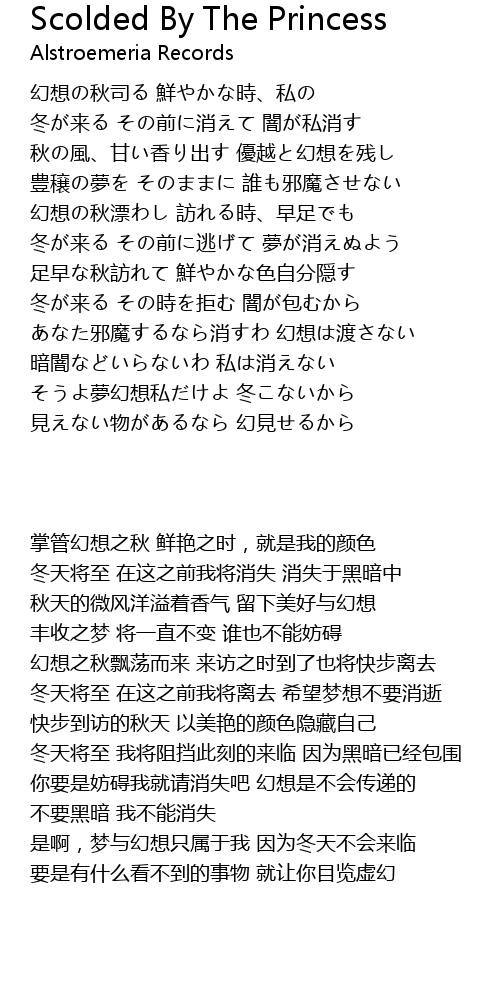 | [05:40.42] | あなた邪魔するなら消すわ 幻想は渡さない |