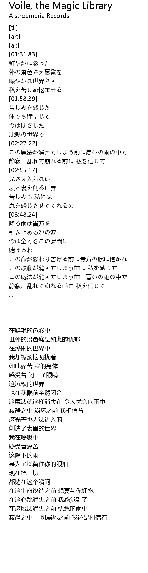 | [04:46.10] | この魔法が消えてしまう前に憂いの雨の中で |