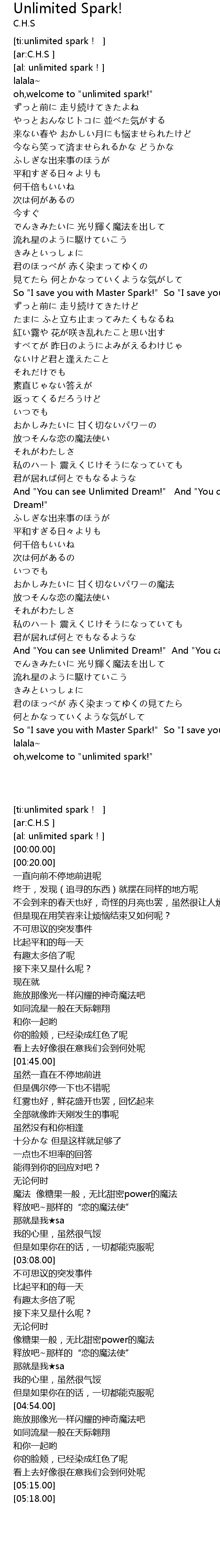 | [05:37.00] | oh,welcome to "unlimited spark!" |