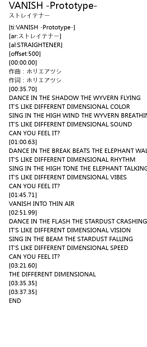 | [00:48.41] | IT'S LIKE DIFFERENT DIMENSIONAL SOUND |