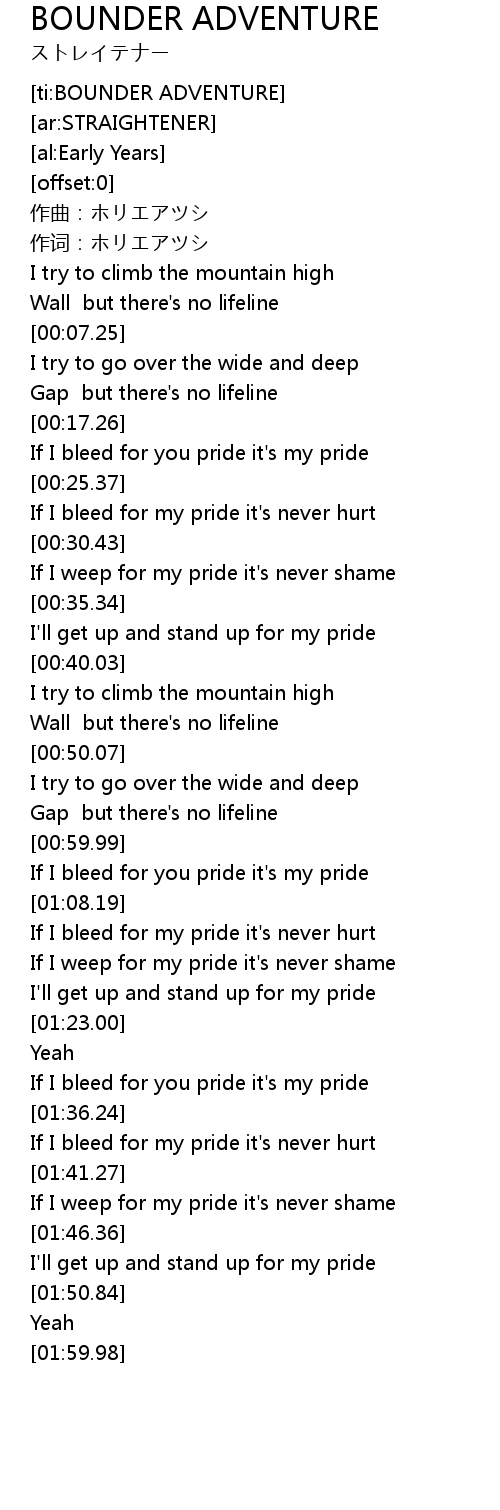 | [00:36.10] | I'll get up and stand up for my pride |