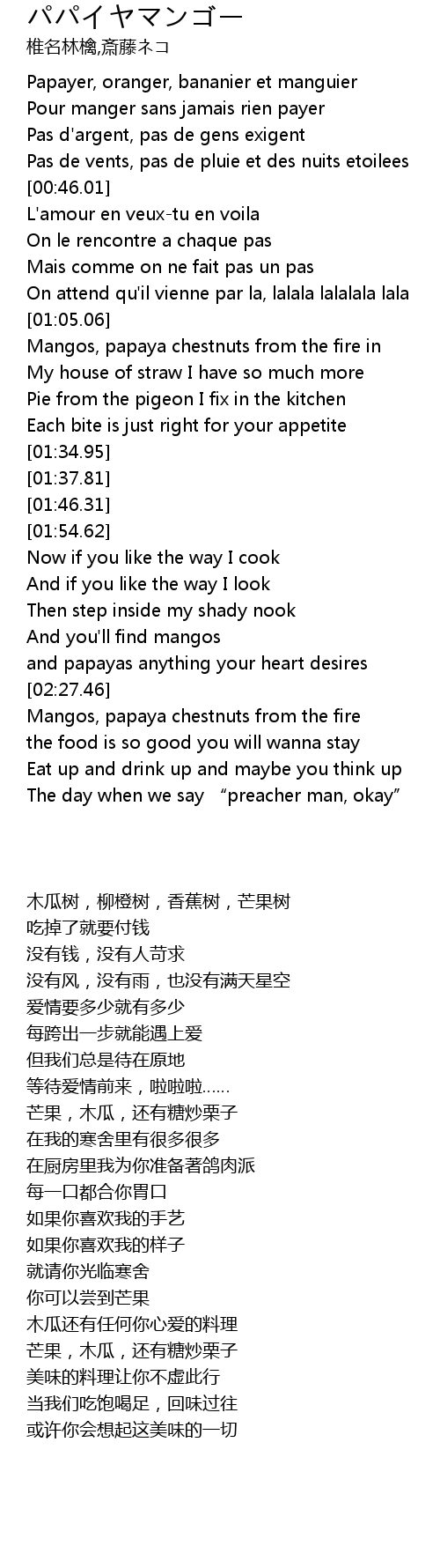 | [02:27.77] | Mangos, papaya chestnuts from the fire |