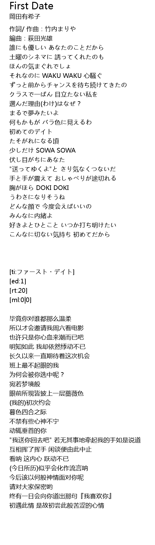 | [01:13.903] | 初めてのデイト |