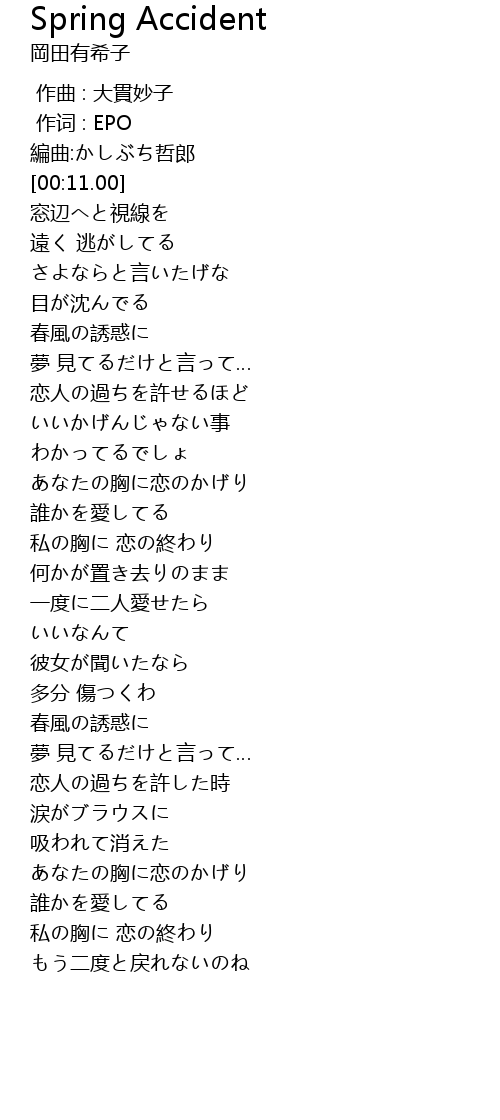 | [00:10.00] | 編曲:かしぶち哲郎 |
