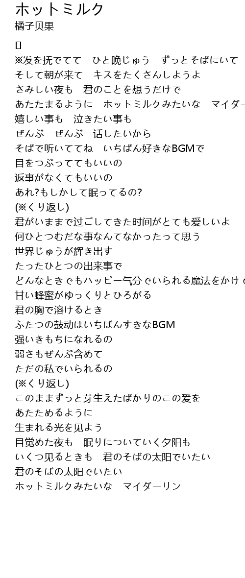 | あたたまるように ホットミルクみたいな マイダーリン※ | |