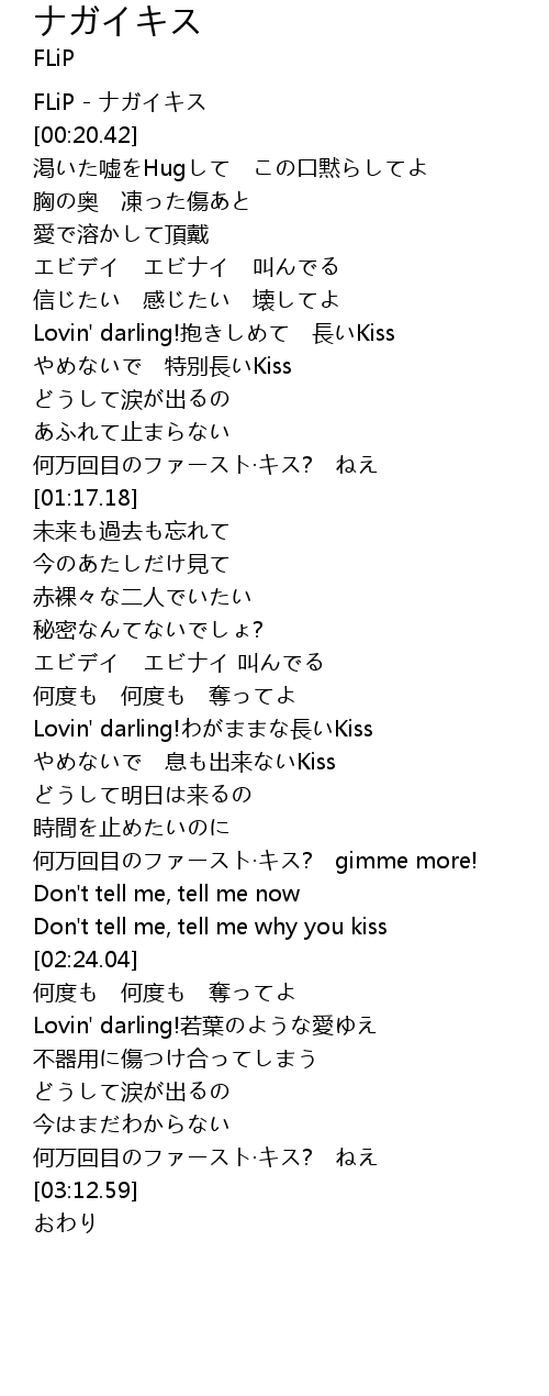 | [00:59.34] | やめないで 特別長いKiss |