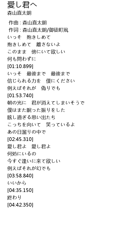 | [00:00.00] | 作曲 : 森山直太朗 |