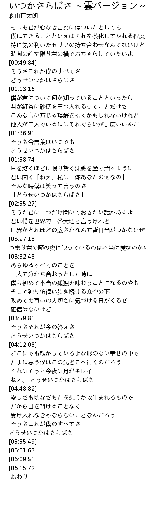 | [02:29.92] | 「どうせいつかはさらばさ」 |