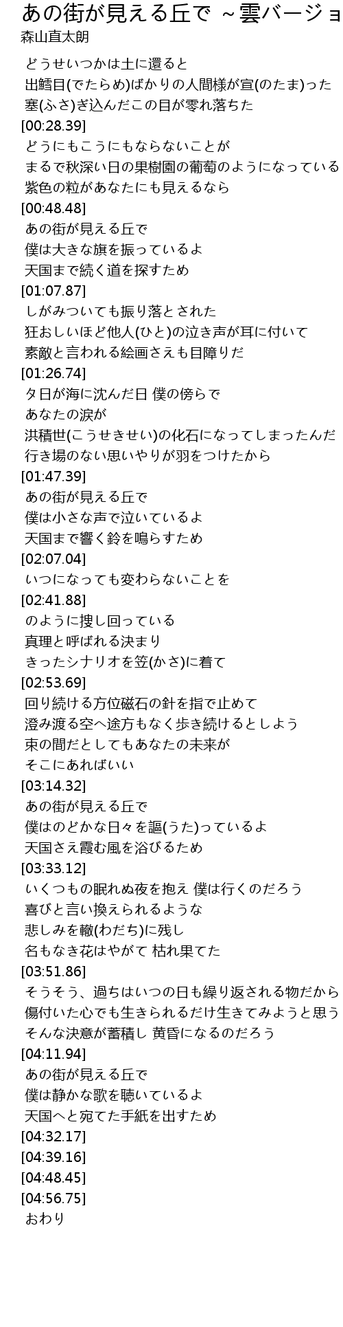 | Song | あの街が見える丘で ~雲バージョン~ |