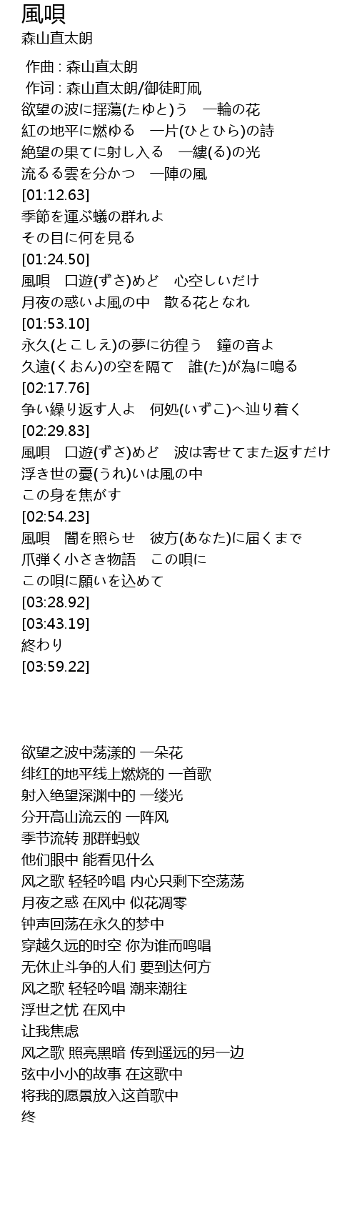 | [02:42.51] | 浮き世の憂(うれ)いは風の中 |