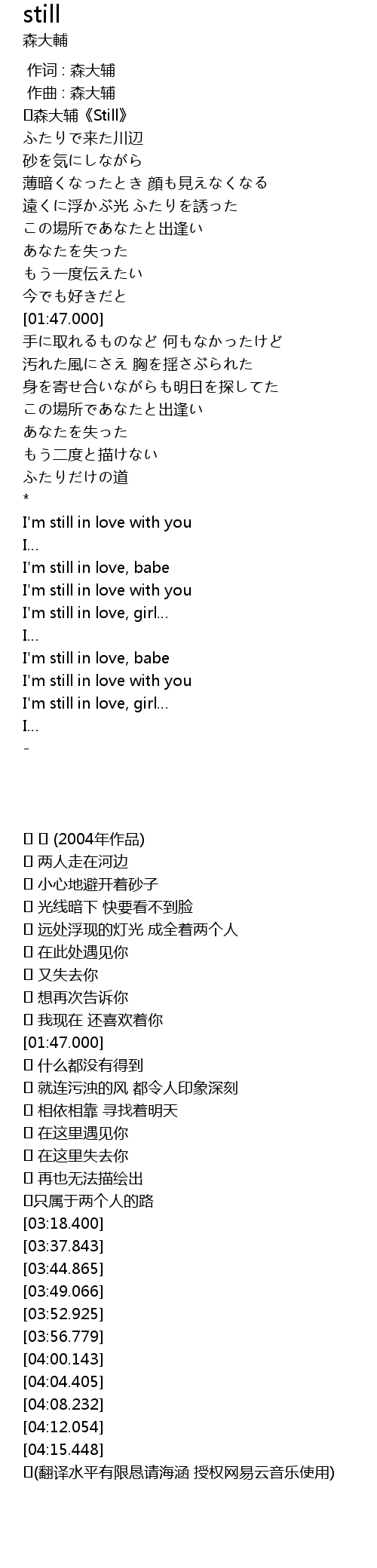 | [00:07.900] | ♪森大辅《Still》 |