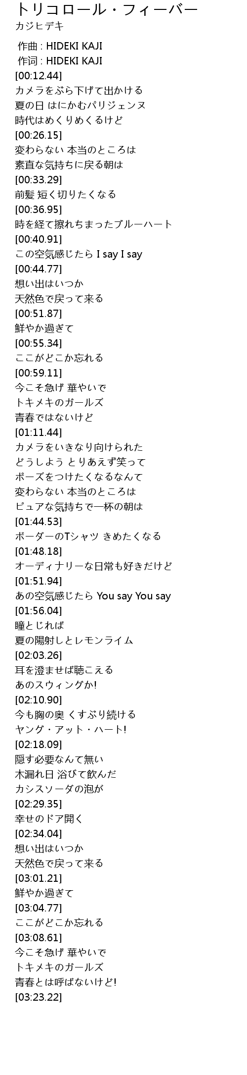 | [00:00.00] | 作曲 : HIDEKI KAJI |