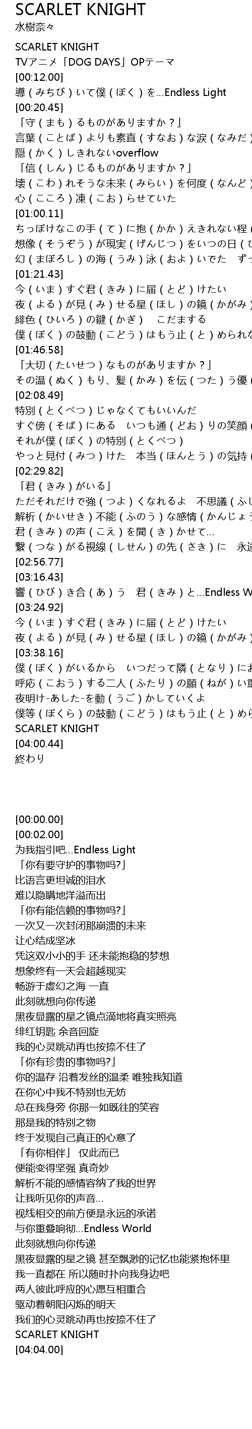 | [00:13.41] | 導(みちび)いて僕(ぼく)を…Endless Light |