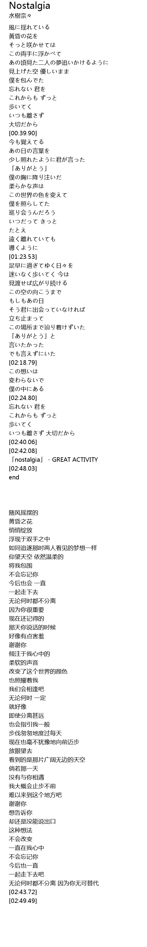 | [02:43.72] | 「nostalgia」 - GREAT ACTIVITY |