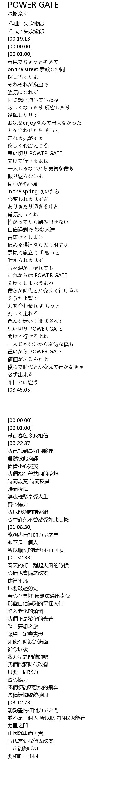 | [02:21.45] | これからは POWER GATE |