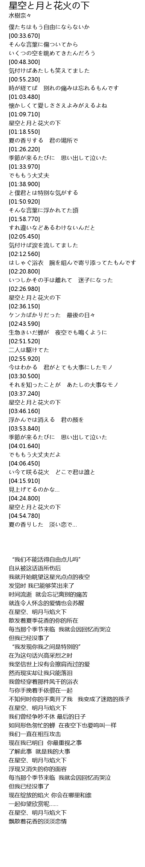 | [04:48.540] | 星空と月と花火の下 |