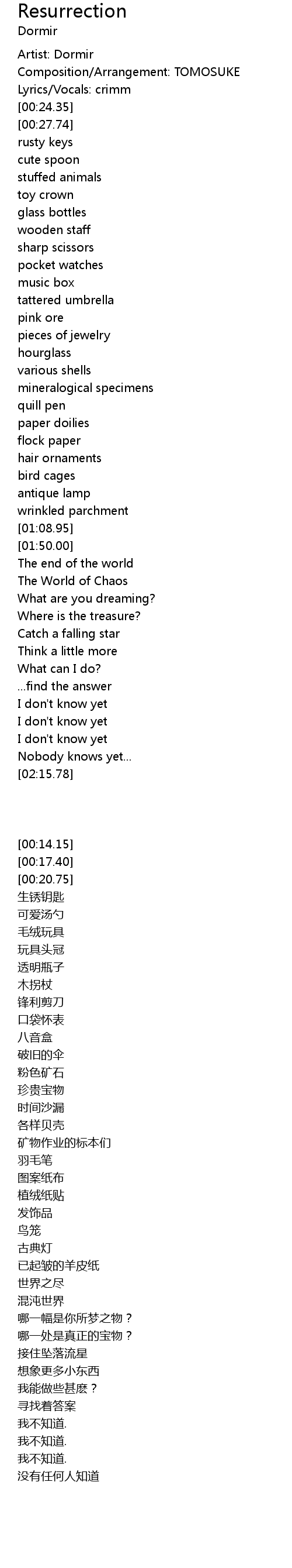 | [00:14.15] | Artist: Dormir |