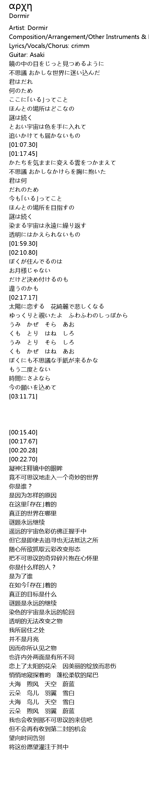 | [00:20.28] | Lyrics/Vocals/Chorus: crimm |