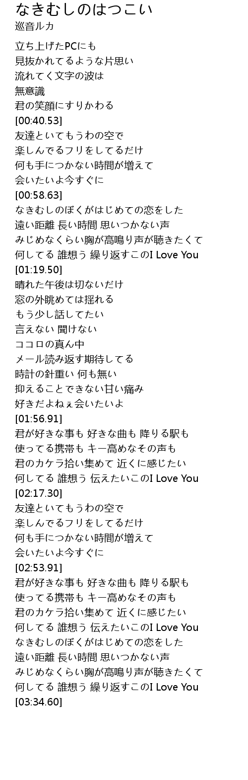 | [01:00.21] | なきむしのぼくがはじめての恋をした |