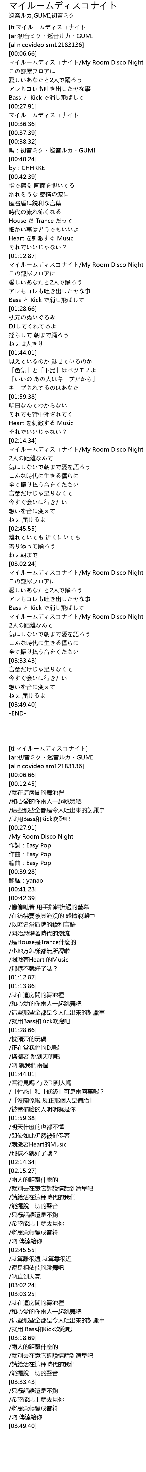 | [03:18.69] | マイルームディスコナイト/My Room Disco Night |