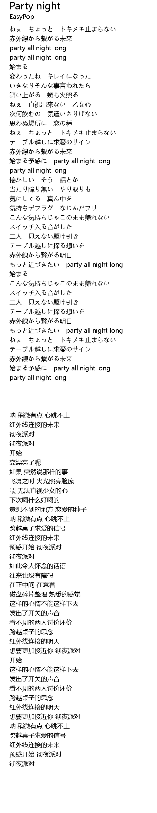 | [03:14.26] | shǐ yǔ gǎn party all night long |