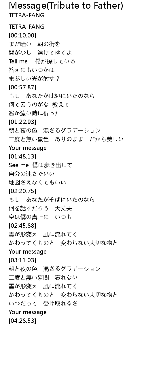 | [01:32.22] | 二度と無い景色 ありのまま だから美しい |