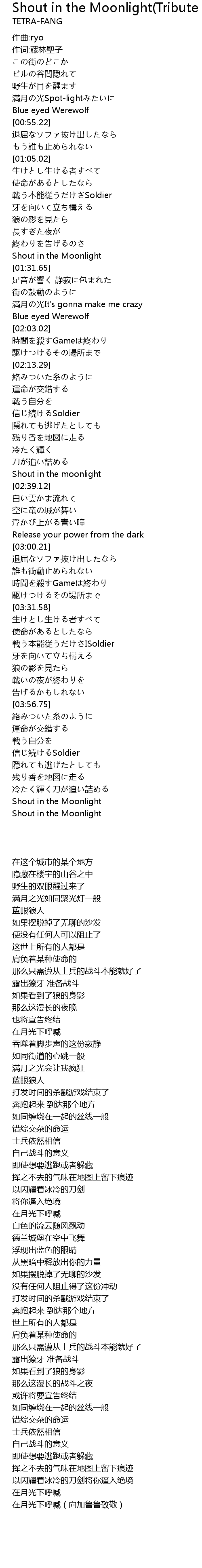 | [02:36.38] | Shout in the moonlight |