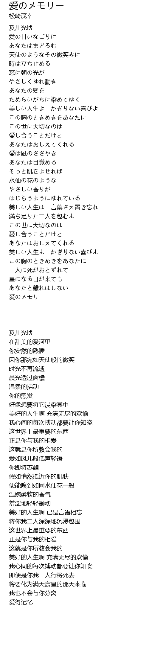 | Song | 爱のメモリー |