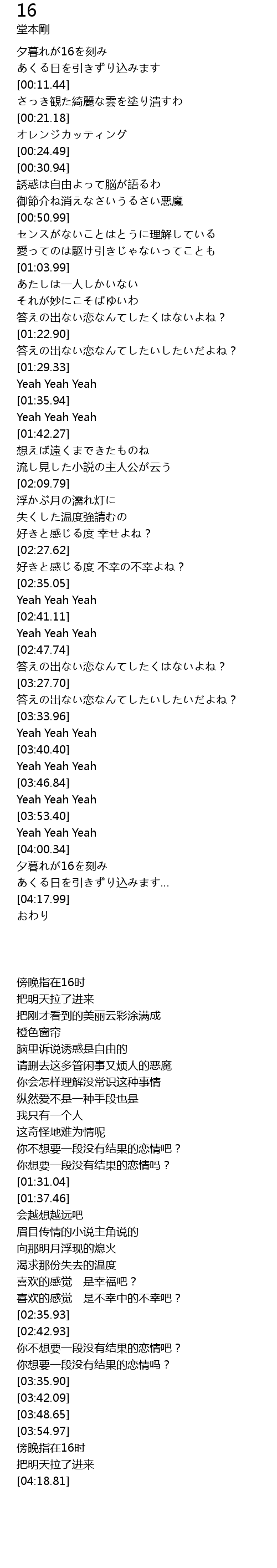 | [04:06.28] | 夕暮れが16を刻み |
