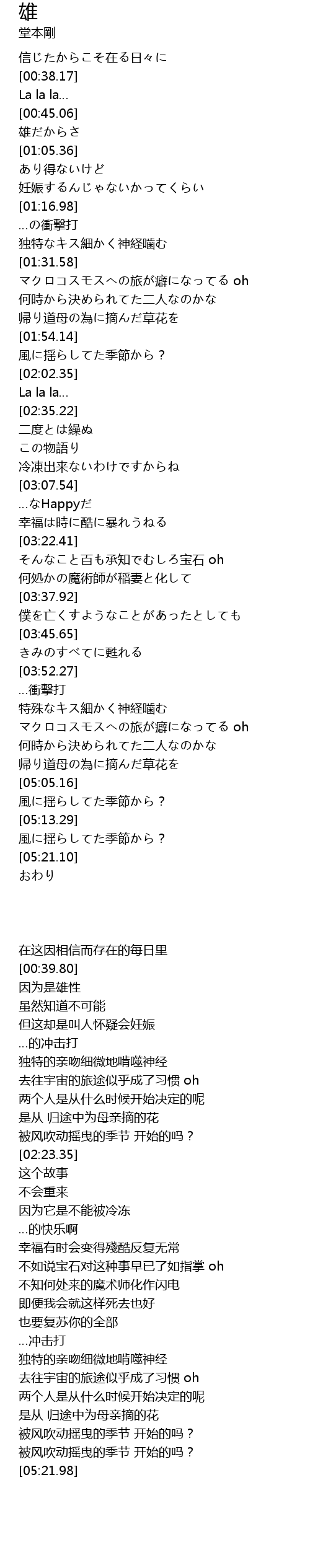 | [01:02.99] | 雄だからさ |