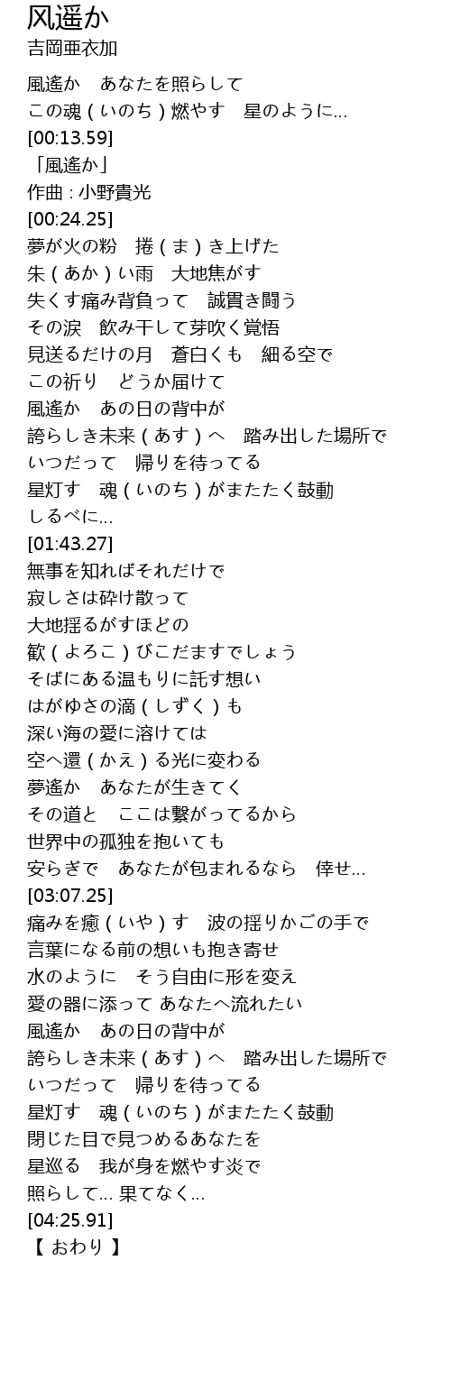 | [00:15.25] | 「風遙か」 |