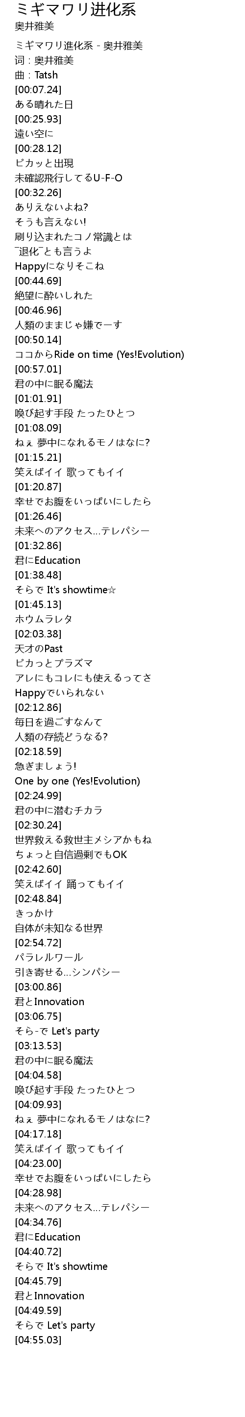 | [00:01.40] | ミギマワリ進化系 - 奥井雅美 |