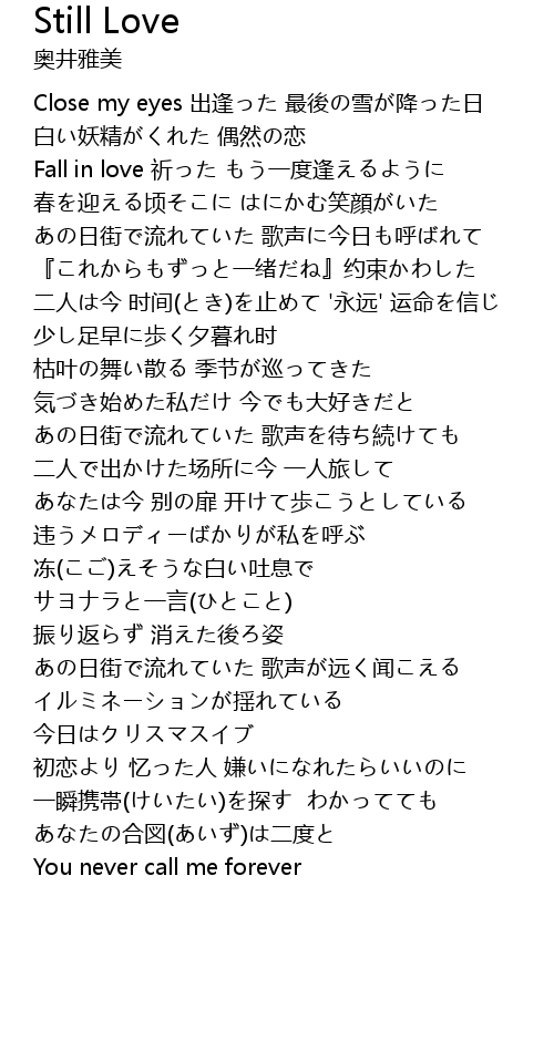 | [00:42.81] | Fall in love 祈った もう一度逢えるように |